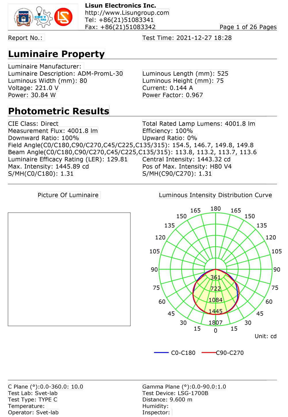 - Световая эффективность - 115 Лм/Вт